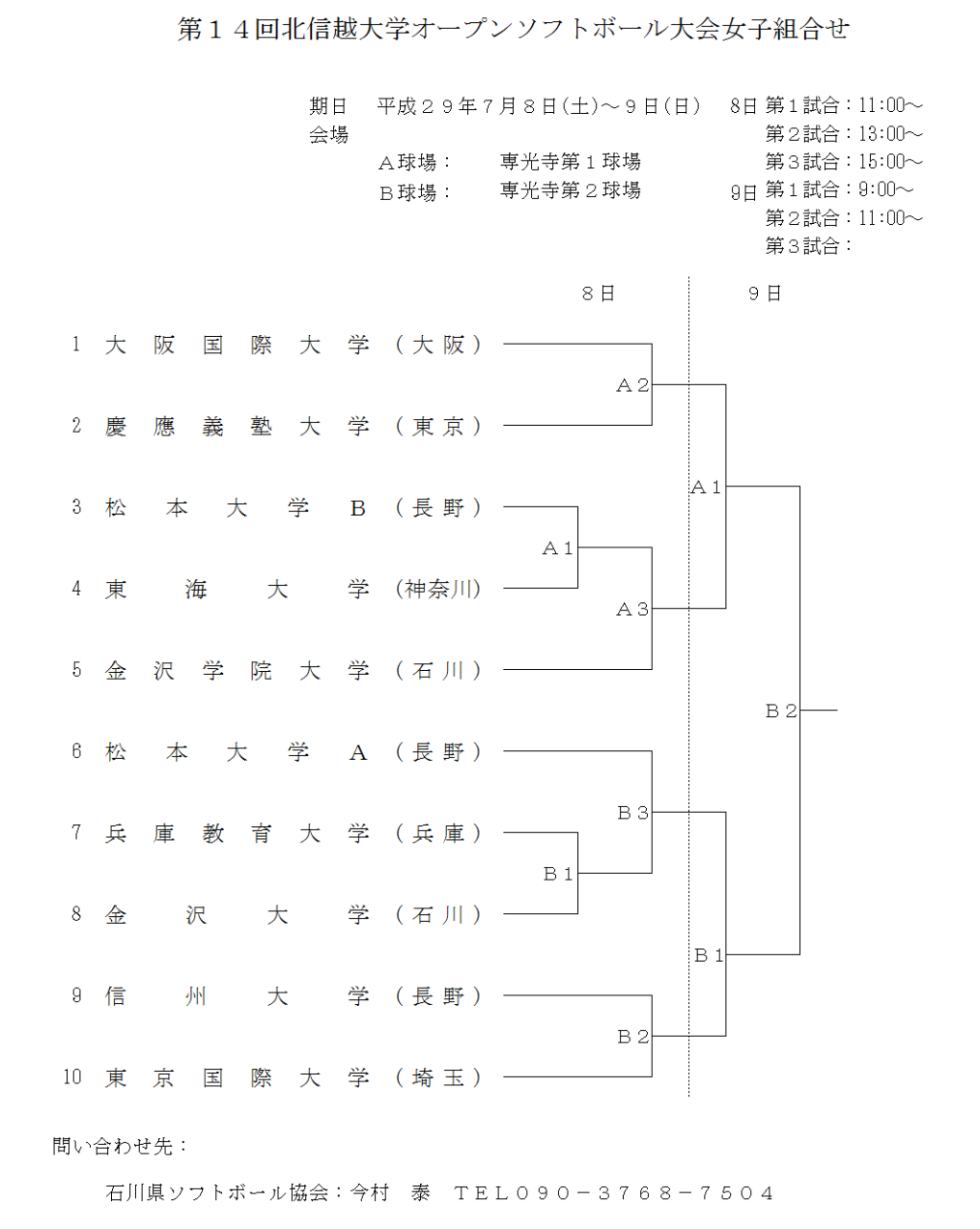 第14回北信越大学オープンソフトボール大会 女子 組合せ