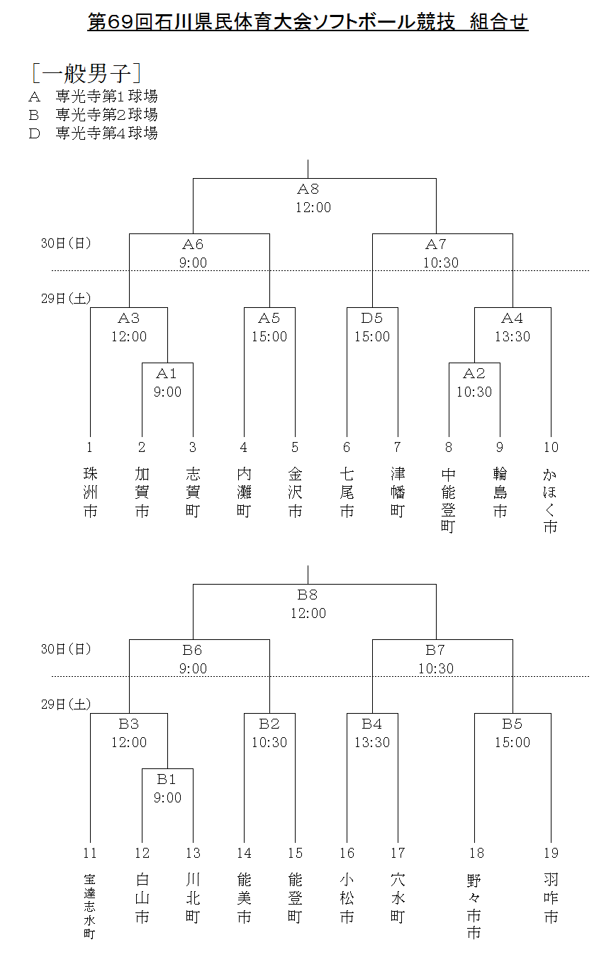 第69回石川県民体育大会 一般男子 組合せ